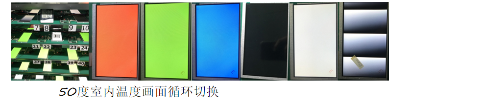 1.动态老化,将成品Module在老化架上点灯,画面按频率切换或接DVD信号源高频播放(老化房室内温度50摄氏度)