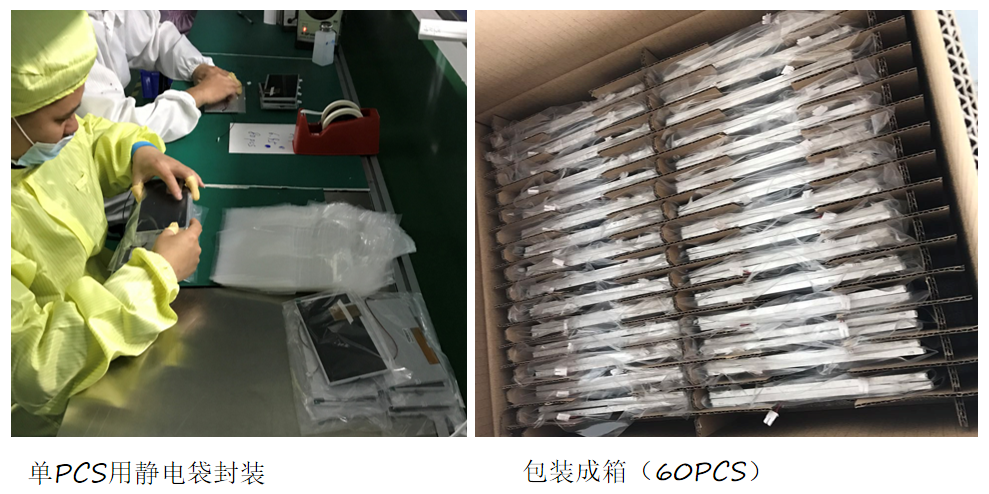 3.产品封装包装,将单PCS产品用静电袋封装好,包装成箱(60PCS)